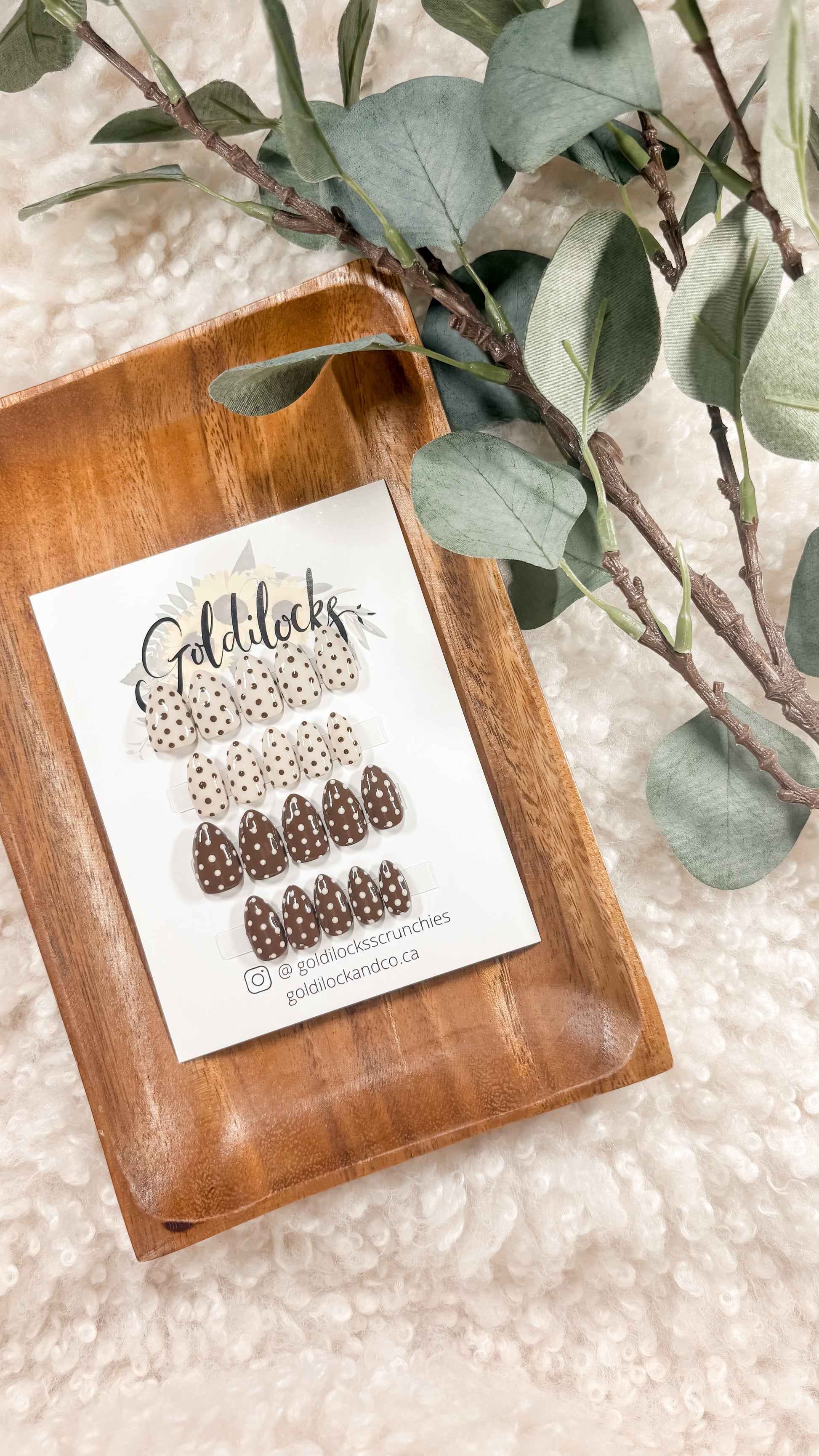 - Lay out the nails from largest to smallest and match each to your natural nails. ALWAYS MEASURE TWICE!
