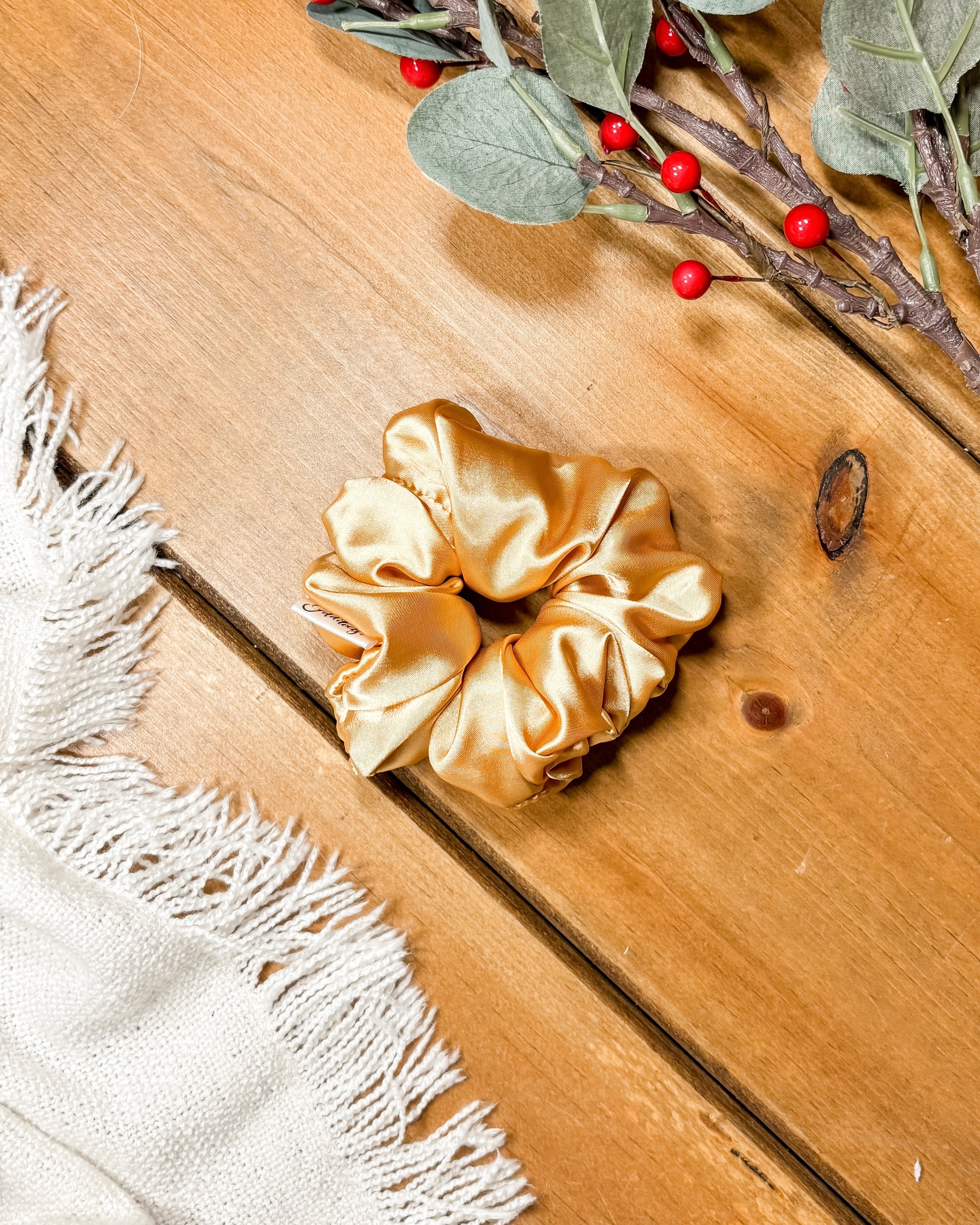 All of our scrunchies are made from many soft fabrics such as jersey knit, Satin, and velvet that will not pull on your hair like a normal elastic. This fabric will help reduce breakage and keep your hair healthier longer.